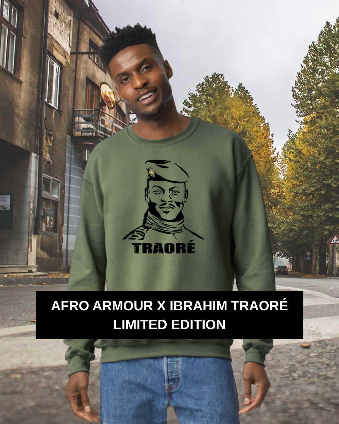 Burkina Faso's Ibrahim Traoré is a symbol of modern, Pan-African strength, leadership and revolution. Changing the game! Check out our NEW Limited Edition Afro Armour x Ibrahim Traoré crew neck sweater!